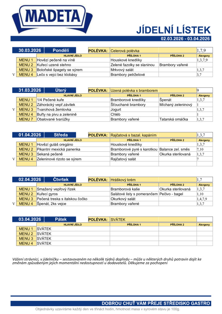 Jídelníček Bistro Madetka ČB