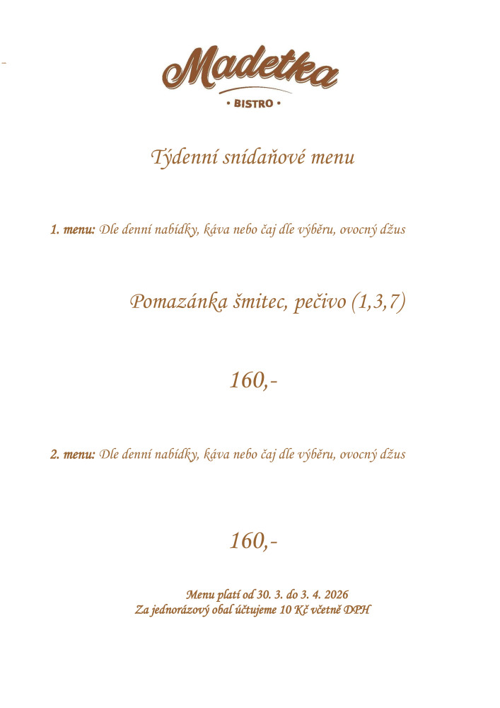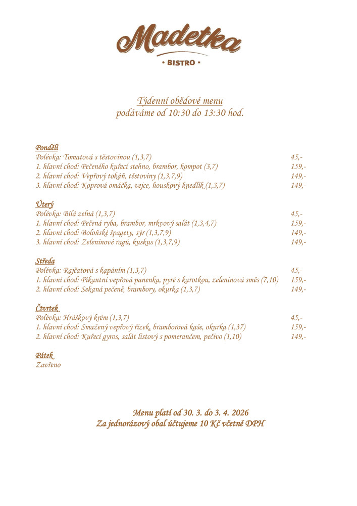 Jídelníček Bistro Madetka ČB